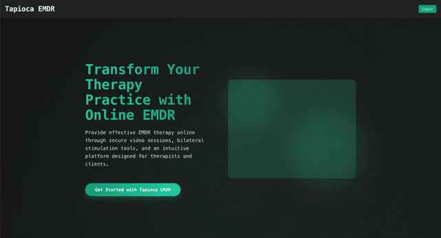 Tapioca EMDR is a web application that allows therapists to create and manage EMDR telehealth sessions. It automates EMDR visualizations and allows therapists to focus on their clients.